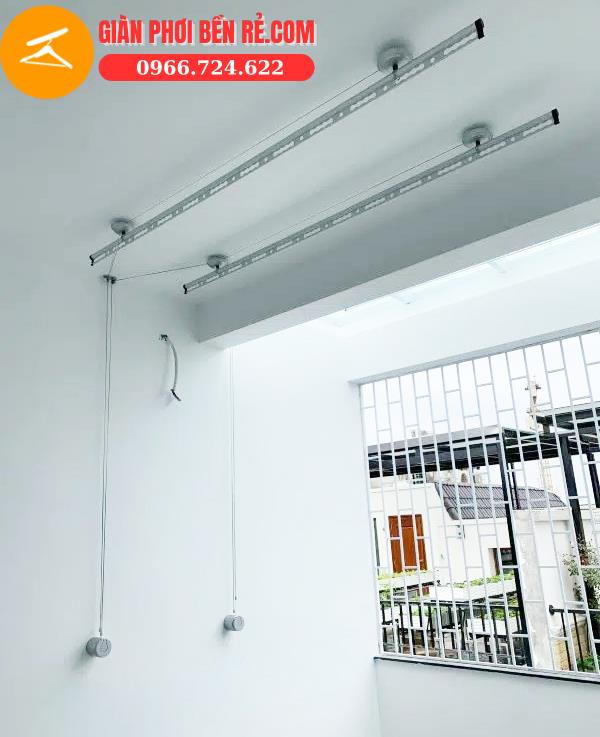 Thanh phơi: Một bộ giàn phơi thông minh H001 bao gồm 2 thanh phơi mỗi thanh dài 2,4m nên bạn có thể phơi quần áo thoải mái. Ngoài ra còn có thanh phơi dài 3m hoặc loại 4 thanh phơi với 2 thanh dùng để phơi chăn ga riêng biệt.