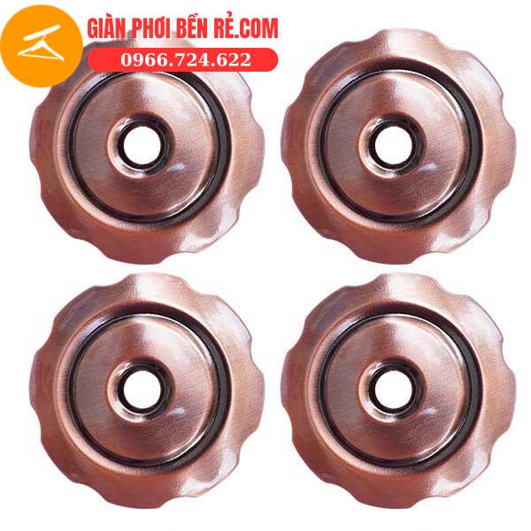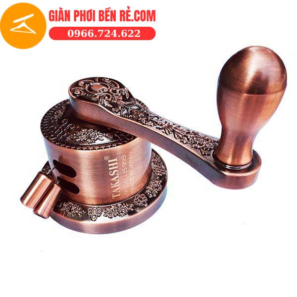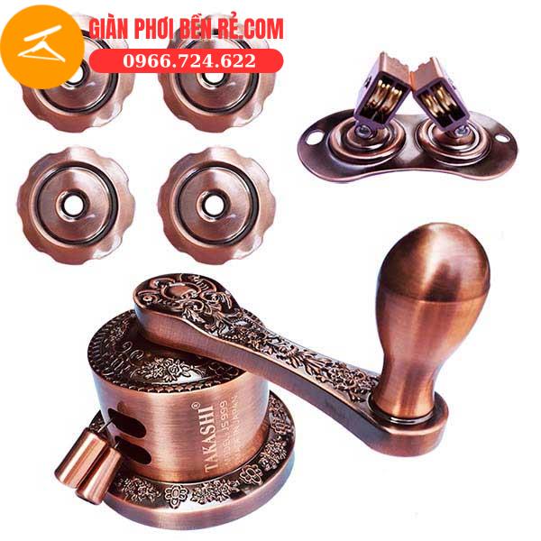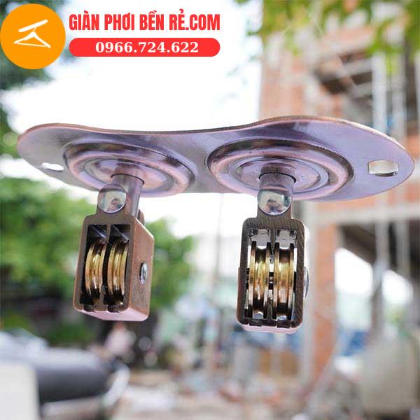 Bộ còn lại có 2 ròng rọc, được làm bằng thép kĩ thuật không rỉ sét và được mạ tĩnh điện màu đồng đỏ sang trọng, có nhiệm vụ đổi chiều lực khiến tay quay có thể điều khiển thanh phơi dễ dàng